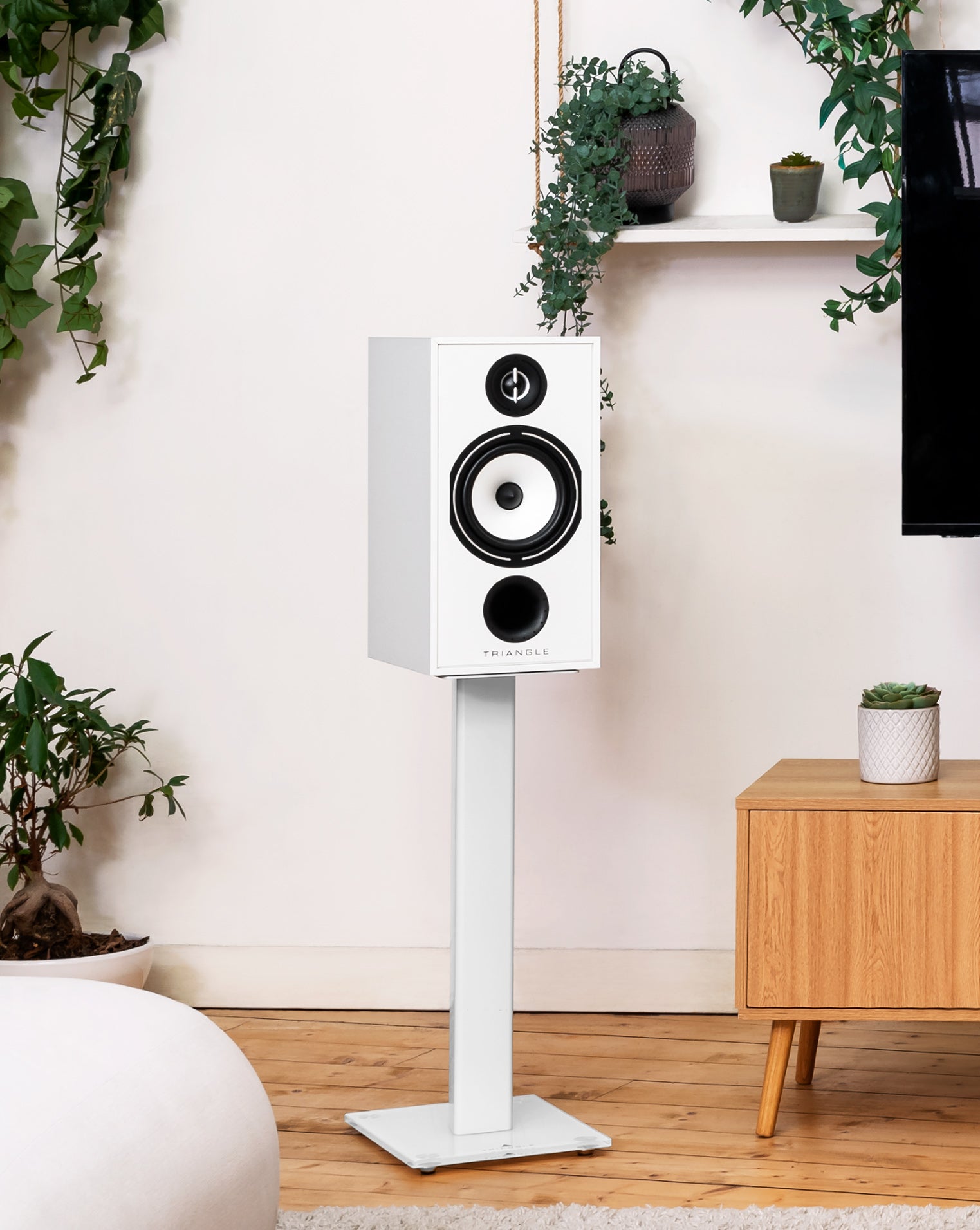 Le système DVAS (Driver Vibration Absorption System), exclusif à TRIANGLE, réduit les vibrations grâce à une intégration astucieuse des haut-parleurs dans la structure de l’enceinte. Cela améliore la rigidité à l’ensemble pour atténuer toute fréquence parasite.