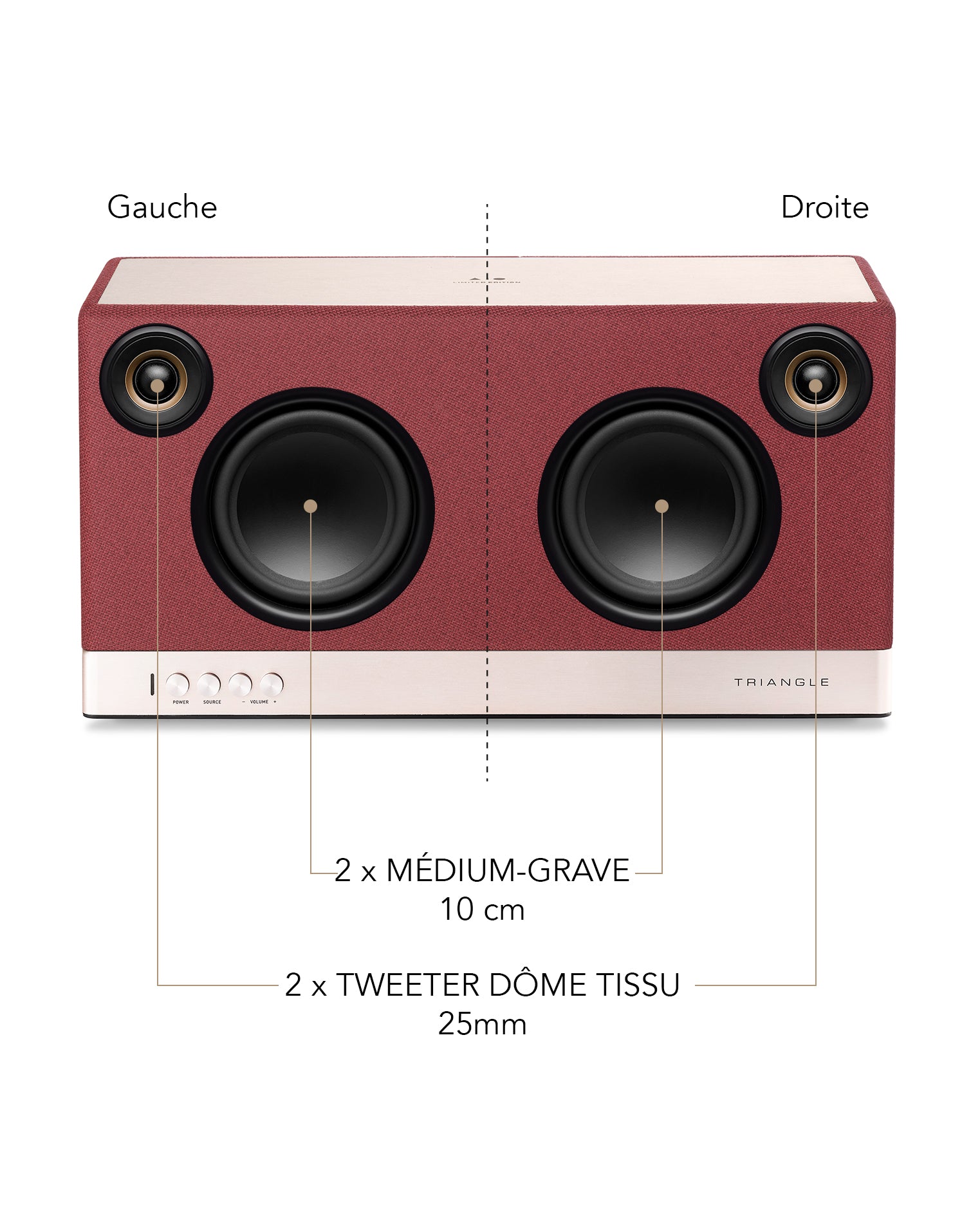 Scindée en deux parties pour reproduire avec précision les canaux gauche et droite, l’enceinte est équipée de 2 tweeters à dôme tissu de 25mm et de 2 haut-parleurs medium-grave de 10 cm qui sonorisera avec aisance de petites et moyennes surfaces, allant jusqu'à 20m2.